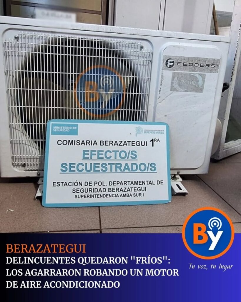 En un operativo policial realizado este domingo en Berazategui, dos hombres fueron detenidos cuando intentaban robar el motor de un equipo de aire acondicionado.