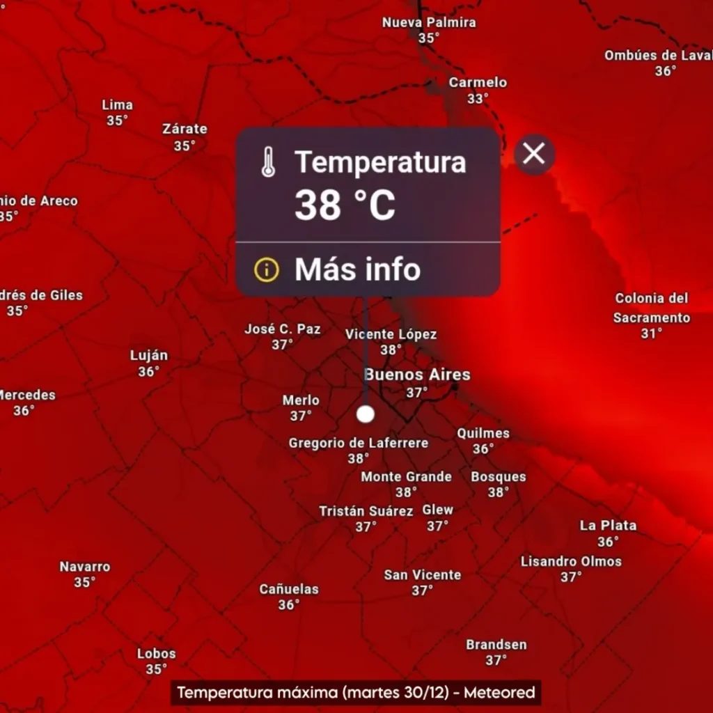 Según los pronósticos, el pico máximo de calor se registrará el martes 30 y miércoles 31 de diciembre, cuando las temperaturas podrían alcanzar hasta los 40°C, especialmente en zonas urbanas, donde el calor suele intensificarse por el efecto de la isla térmica.