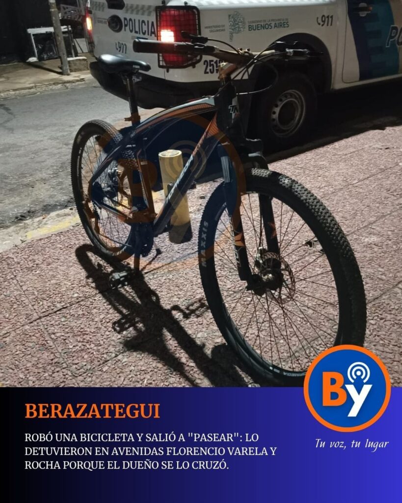 Al advertir que el sospechoso estaba en la zona, los efectivos lo identificaron al sindicado como Andrés B.A., quien rodeado por la policía terminó entregando la bicicleta.Interviene la UFIyJ N° 3 de Berazategui, que dispuso su detención y audiencia en las próximas horas.