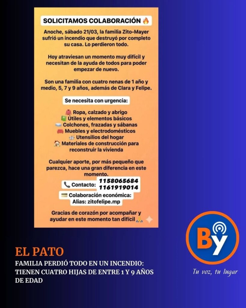 A raíz de lo sucedido, iniciaron una campaña solidaria para poder reconstruir su hogar. Solicitan donaciones de ropa, calzado, colchones, frazadas, muebles, electrodomésticos y materiales de construcción. También se encuentra habilitada la posibilidad de colaborar con ayuda económica.