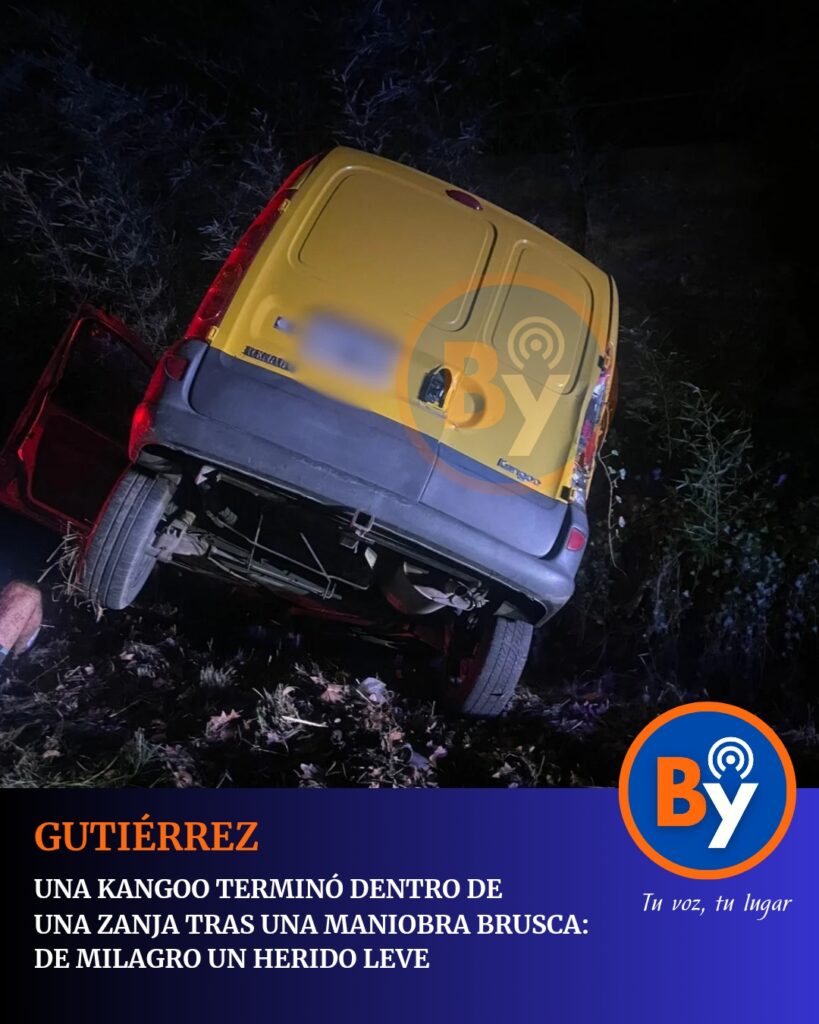 Al arribar al lugar, personal del Comando de Patrullas constató que el vehículo involucrado era una Renault Kangoo amarilla. Según se pudo establecer, el conductor habría realizado una maniobra brusca, perdió el control y finalizó su recorrido dentro del zanjón.